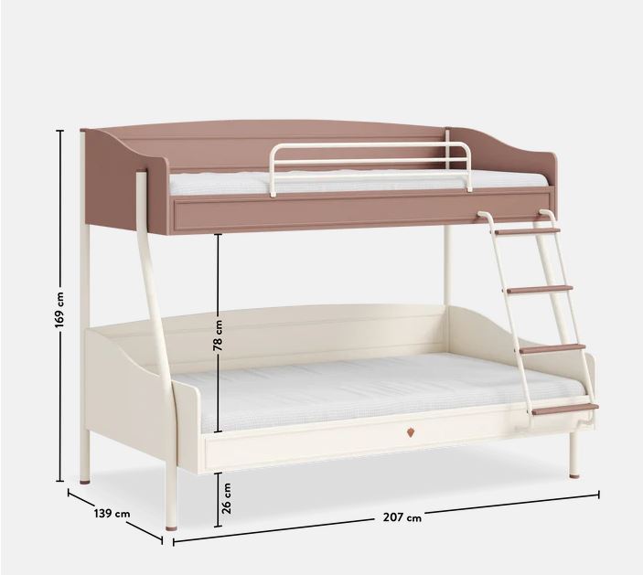 • Осигурява по-просторна среда за спане с голямата си долна част на леглото.