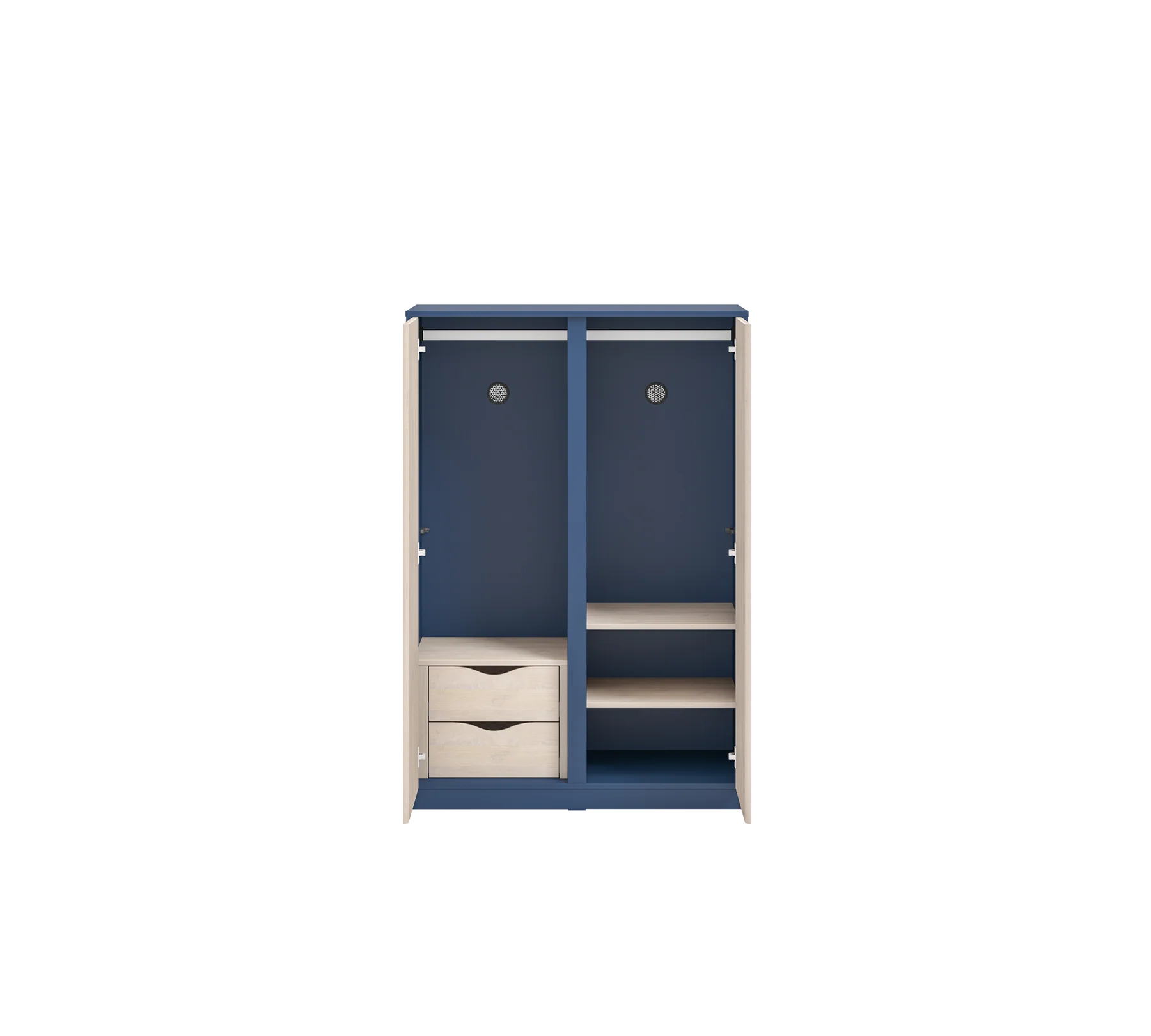 Предлагайки интелигентни решения за по-малки пространства, гардеробът Trio Studio разполага с 2 рафта, 2 лоста за закачалки и 2 чекмеджета, където можете да съхранявате както дрехите си, така и други вещи. С панти с плавно затваряне, вратите се затварят безшумно и бавно, а гардеробът Studio Trio впечатлява с дизайна си без дръжки.