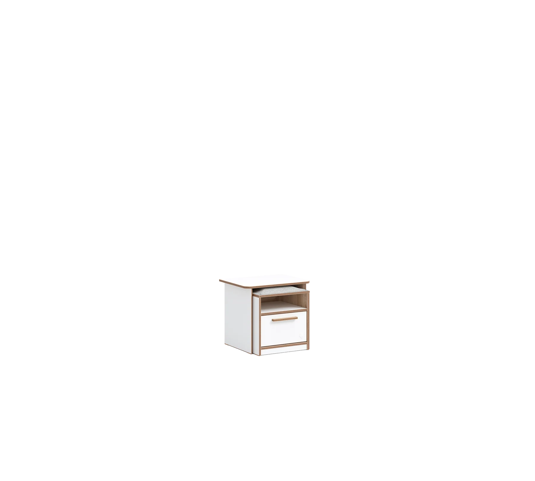 Нощното шкафче Modera с допълнителна табуретка внася комфорт и практичност в младежките стаи. Структурата му, която позволява разделянето му на два независими модула, осигурява голямо предимство в малки пространства и предлага гъвкави възможности за използване. Включената мека възглавница за сядане добавя допълнителна функционалност към нощното шкафче, превръщайки го от обикновенно нощно шкафче в многофункционално място за съхранение.
