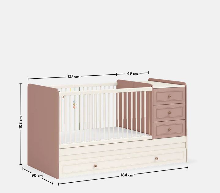 Предлага дълготрайна употреба със своя полезен и удобен компактен дизайн. Например, когато бебето ви порасне, можете да отделите чекмеджетата и рафтове, които са били използвани като маса за повиване в ранна детска възраст, от леглото и да ги използвате като нощни шкафчета.