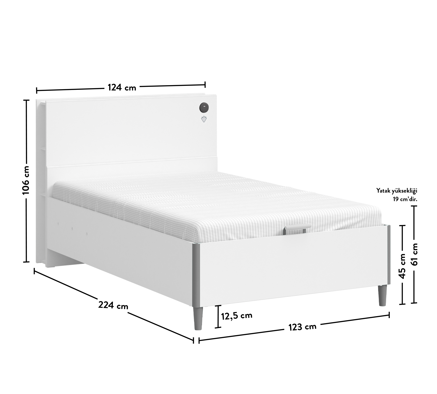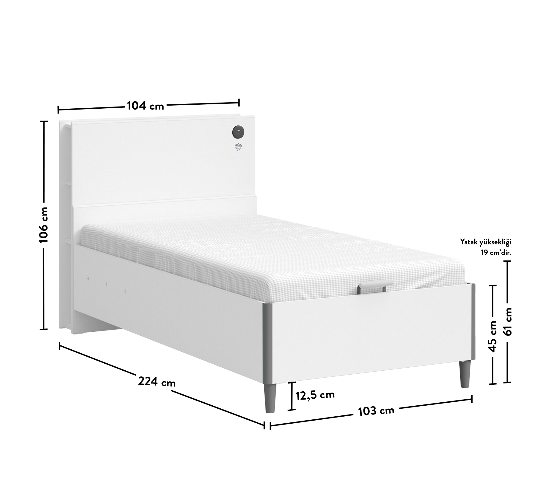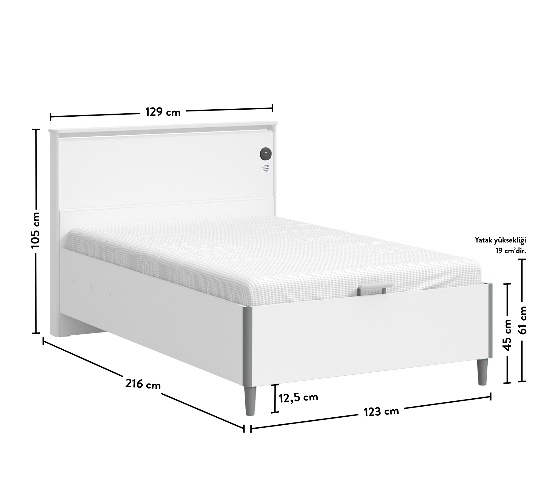 Максималният капацитет на натоварване е 130 кг., леглото е с матраци размер 100x200 см, а базата се отваря и затваря безопасно и тихо благодарение на допълнителната система за сигурност и амортисьорна спирачка.